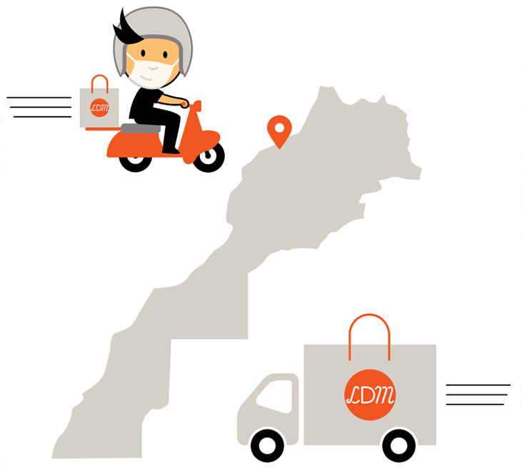 نقوم بالتوصيل في كل مكان في المغرب، إما عن طريق التوصيل الخاص بنا (في الدار البيضاء والرباط)، أو عبر شركات التوصيل المعتمدة لدينا.